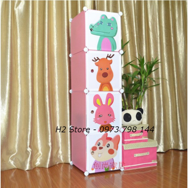 TỦ NHỰA THÔNG MINH ĐỂ ĐỒ ĐA NĂNG 4 Ô CỬA CÁ SẤU NGỘ NGHĨNH LẮP GHÉP GIÁ RẺ sâu 47cm