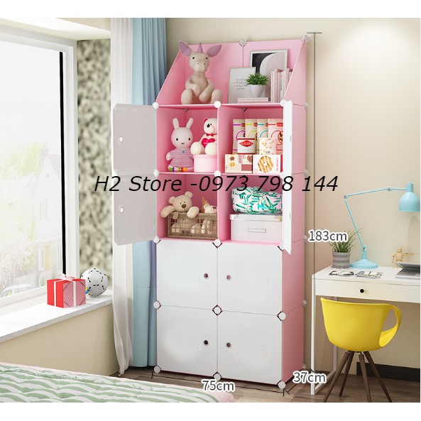 Giới thiệu TỦ NHỰA THÔNG MINH ĐỂ ĐỒ ĐA NĂNG 8 Ô + 2 KỆ TAM GIÁC CỬA TRẮNG ĐỤC VÁCH HỒNG CHO TRẺ sâu 37cm