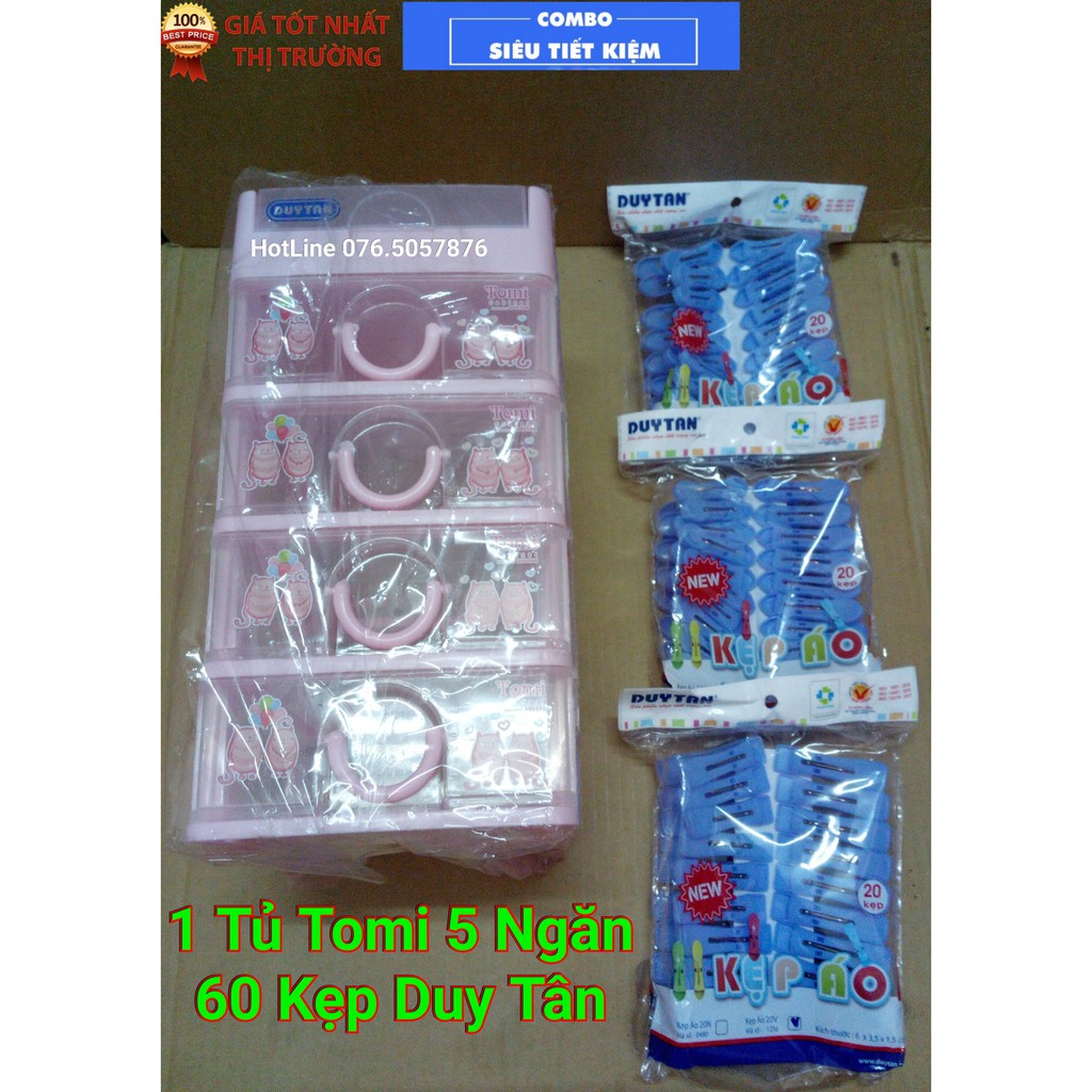 Tủ nhựa Tomi 5 Ngăn Trắng+60 Kẹp Áo Duy Tân