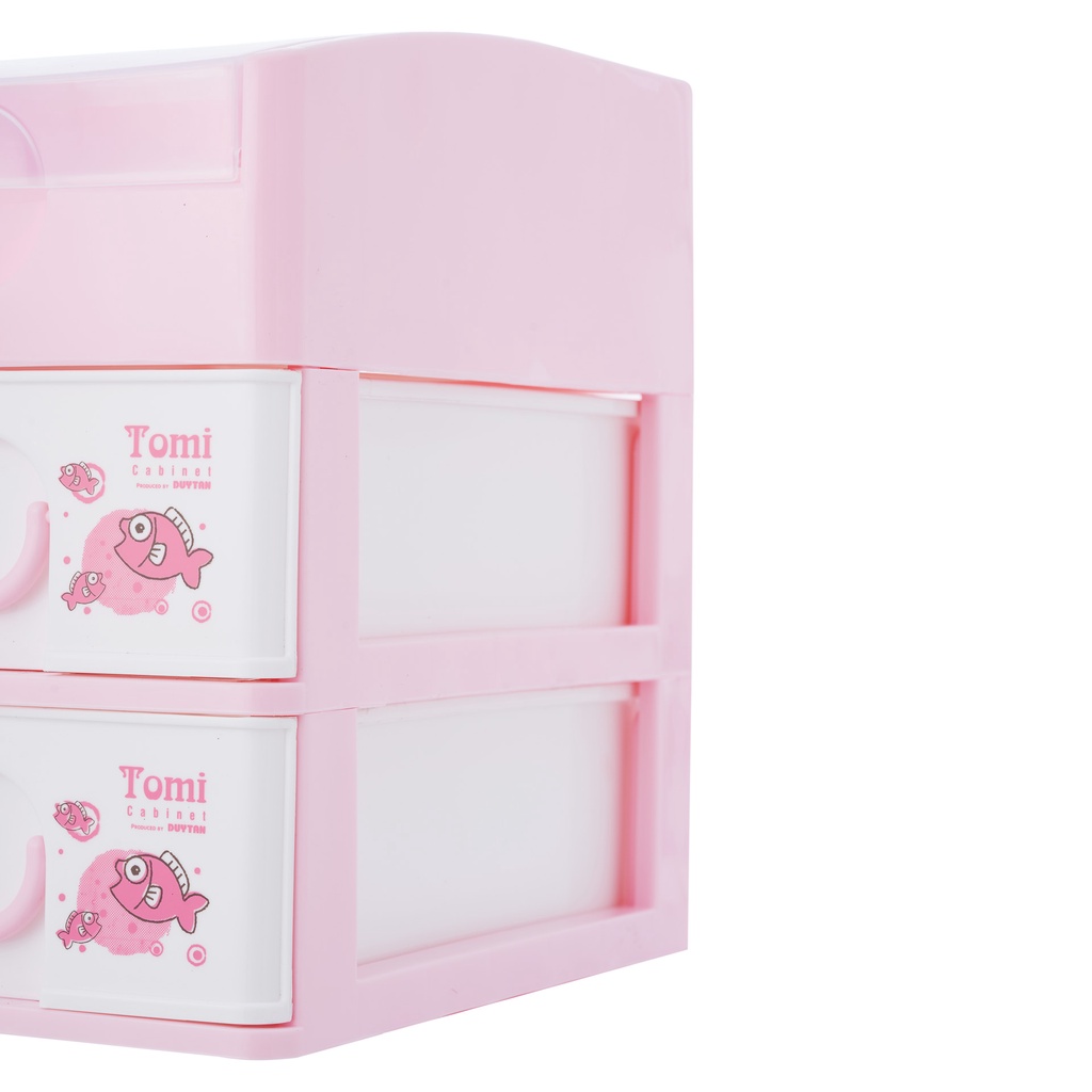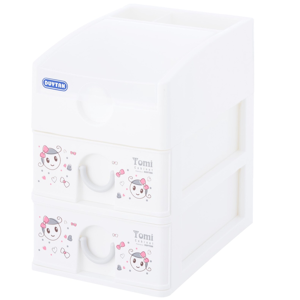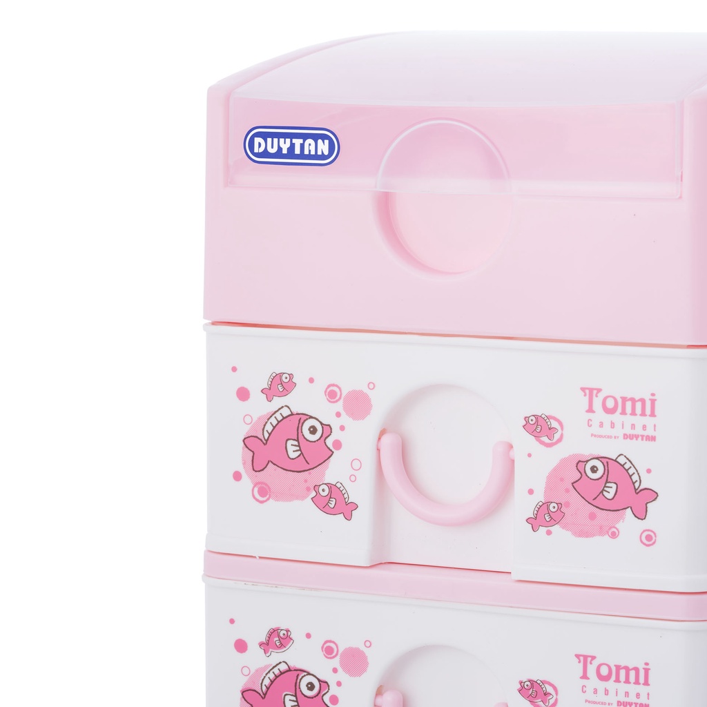 - Tủ nhựa Duy Tân Tomi nhỏ được thiết kế gọn nhẹ gồm tầng trên cùng có nắp đậy và các tầng bên dưới là ngăn kéo.