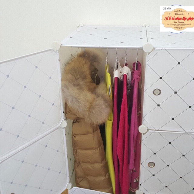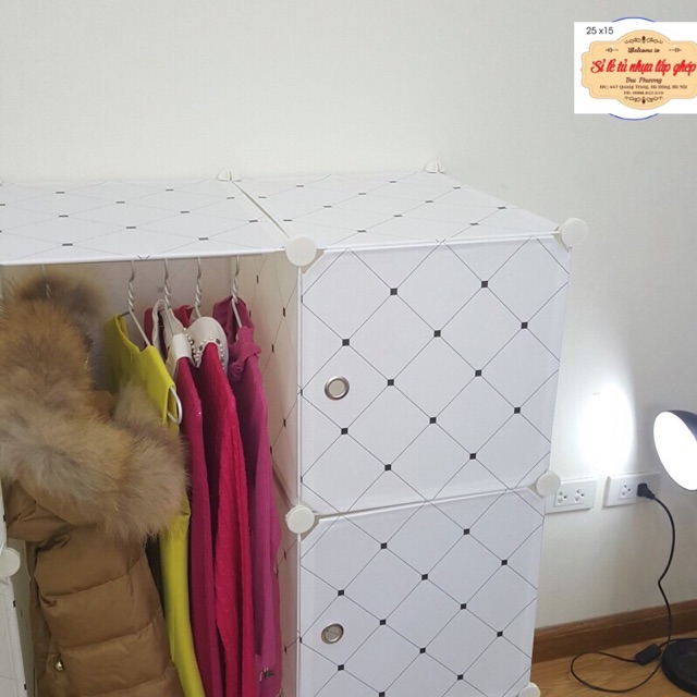 Giới thiệu TỦ NHỰA- TỦ QUẦN ÁO- TỦ NHỰA GHÉP 6+2 Ô GIÀY KẺ TRẮNG CARO SÂU 47cm. Tặng kèm 1 treo đồ.