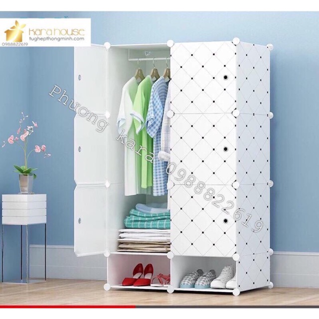 ☘️TỦ 6 ô kèm 2 ô giày lắp hoàn thiện: cao 130cm x rộng 75cm x sâu 47cm.Chi tiết phụ kiện tủ nhựa ghép đa năng 6+2 ô giày.