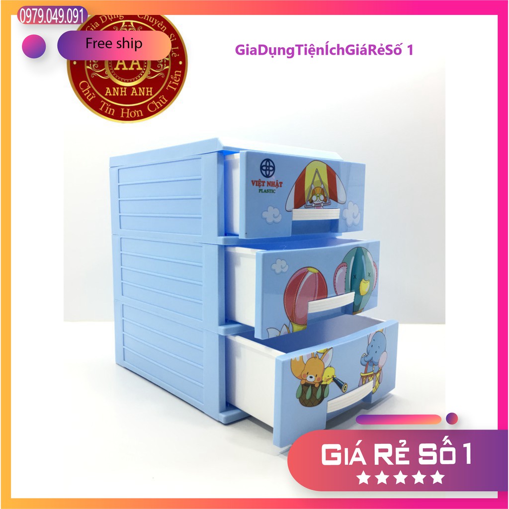 TỦ NHỰA VIỆT NHẬT 3 TẦNG MINI - TỦ QUẦN ÁO TRẺ EM- ĐỒ CÁ NHÂN NHỎ GỌN.- KT: 35 * 27 * 39cm