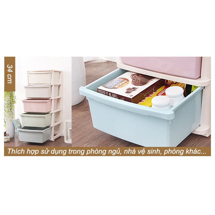 Tủ nhựa VIỆT NHẬT đa sắc ngăn kéo 5 tầng đựng quần áo có bánh xe - Made in Việt Nam