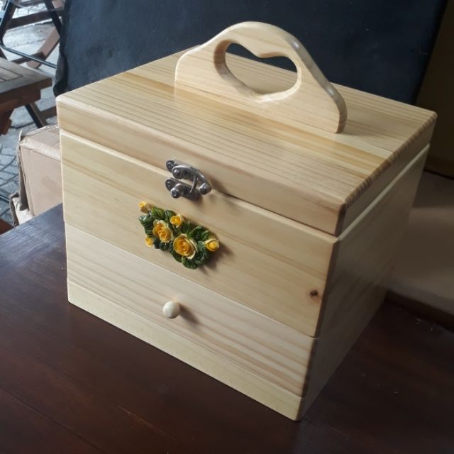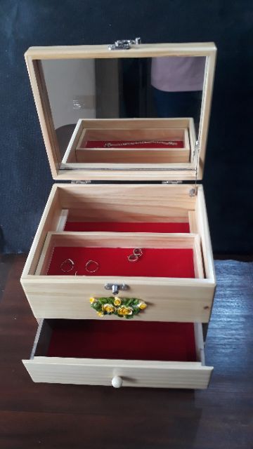 Tủ nữ trang được gia công bằng gỗ thông, bề mặt láng mịn, đẹp.Kích thước : 25x20x26 ( cm)