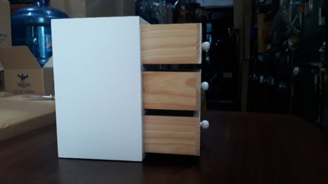 Tủ nữ trang được gia công bằng gỗ thông, MDF phun màu rất đẹp, rất dễ thương.- Kích thước tủ 16x12x19