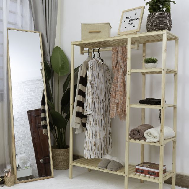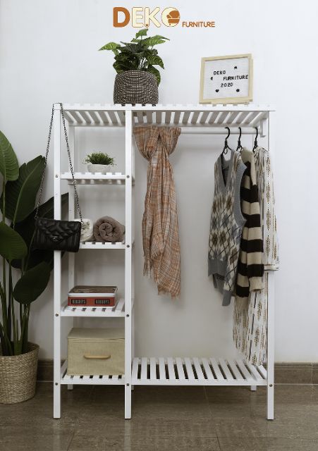 Nhà cửa & Đời sống > Dụng cụ chăm sóc nhà cửa > Dây phơi & giá phơi quần áo || Tủ quần áo DEKO - Kệ kết hợp giá treo đồ gỗ 2 ngănCòn hàng