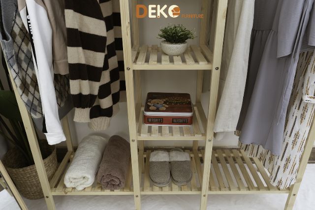Tủ quần áo DEKO - Kệ kết hợp giá treo đồ gỗ 2 ngăn