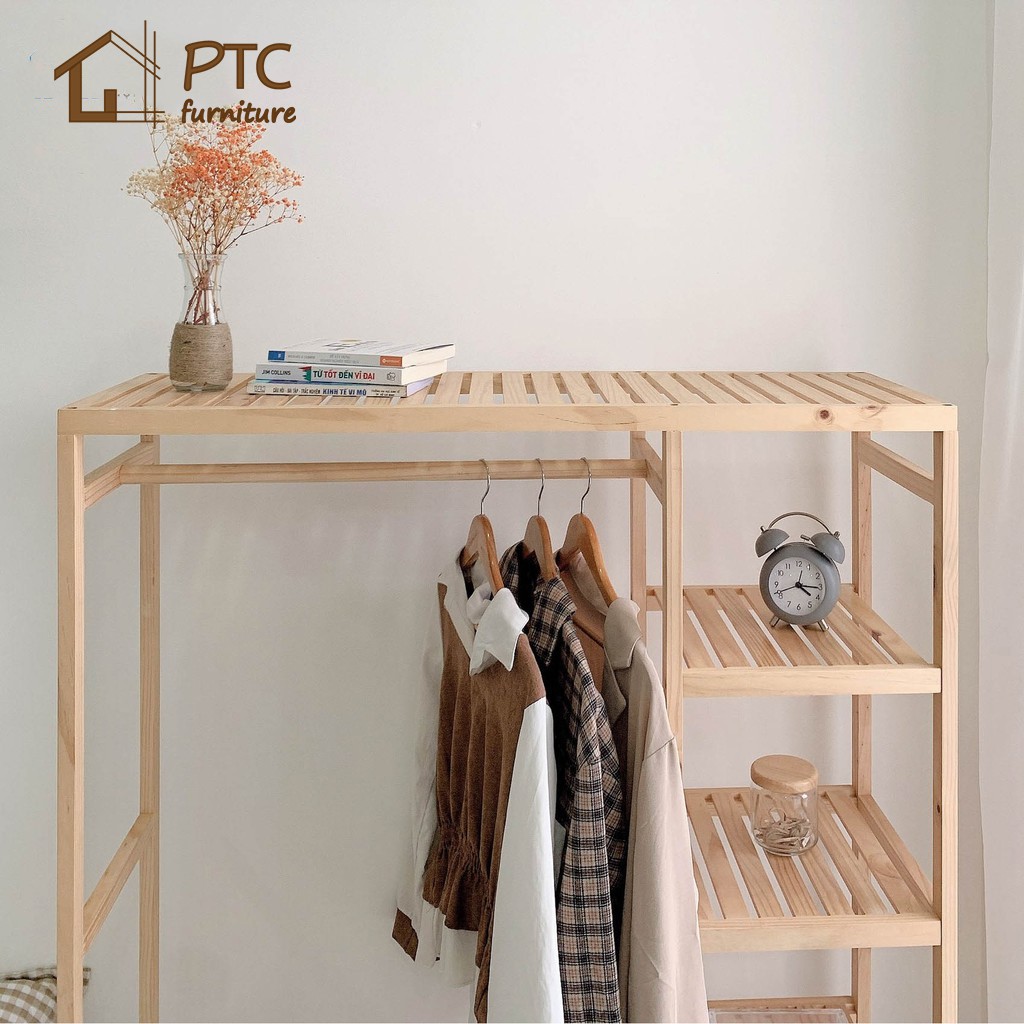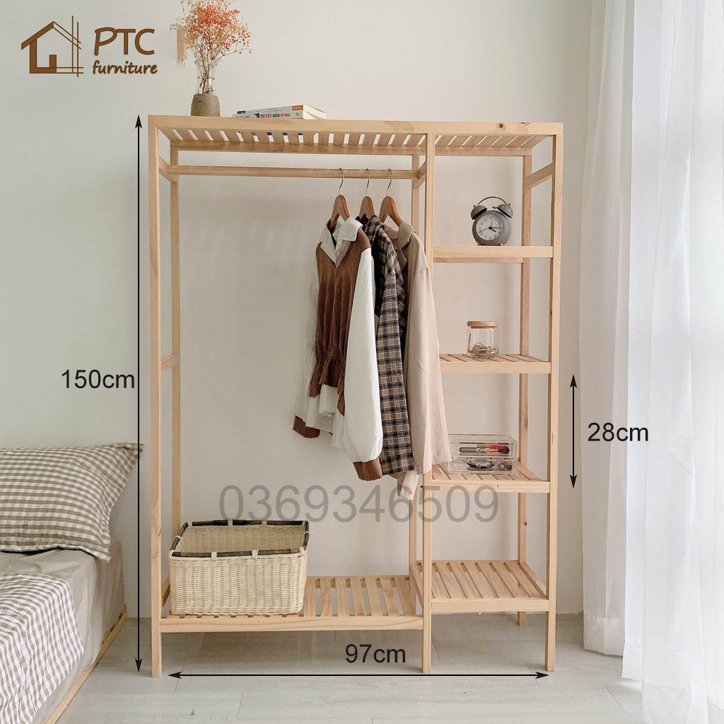 Giới thiệu Tủ Quần Áo FREESHIP Giá Treo Quần Áo Phong Cách Hàn Quốc Gỗ Thông Tự Nhiên 2 Buồng