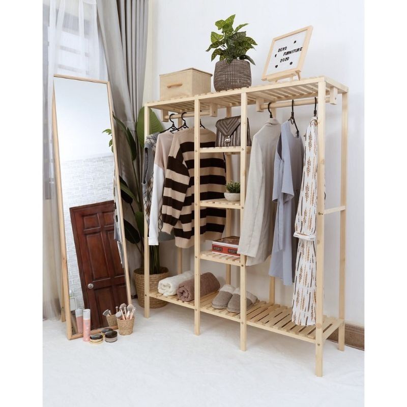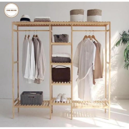 Nhà cửa & Đời sống > Dụng cụ chăm sóc nhà cửa > Dây phơi & giá phơi quần áo || Tủ Quần Áo, Giá Treo Quần Áo Gỗ Thông 3 Gian Phong Cách Hàn Quốc Kệ Gỗ Thông Nhập KhẩuCòn hàng