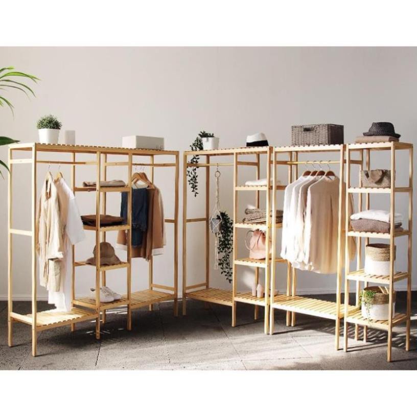 Tủ Quần Áo, Giá Treo Quần Áo Gỗ Thông 3 Gian Phong Cách Hàn Quốc Kệ Gỗ Thông Nhập Khẩu