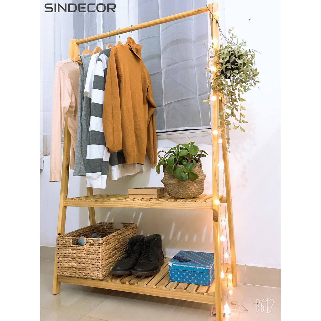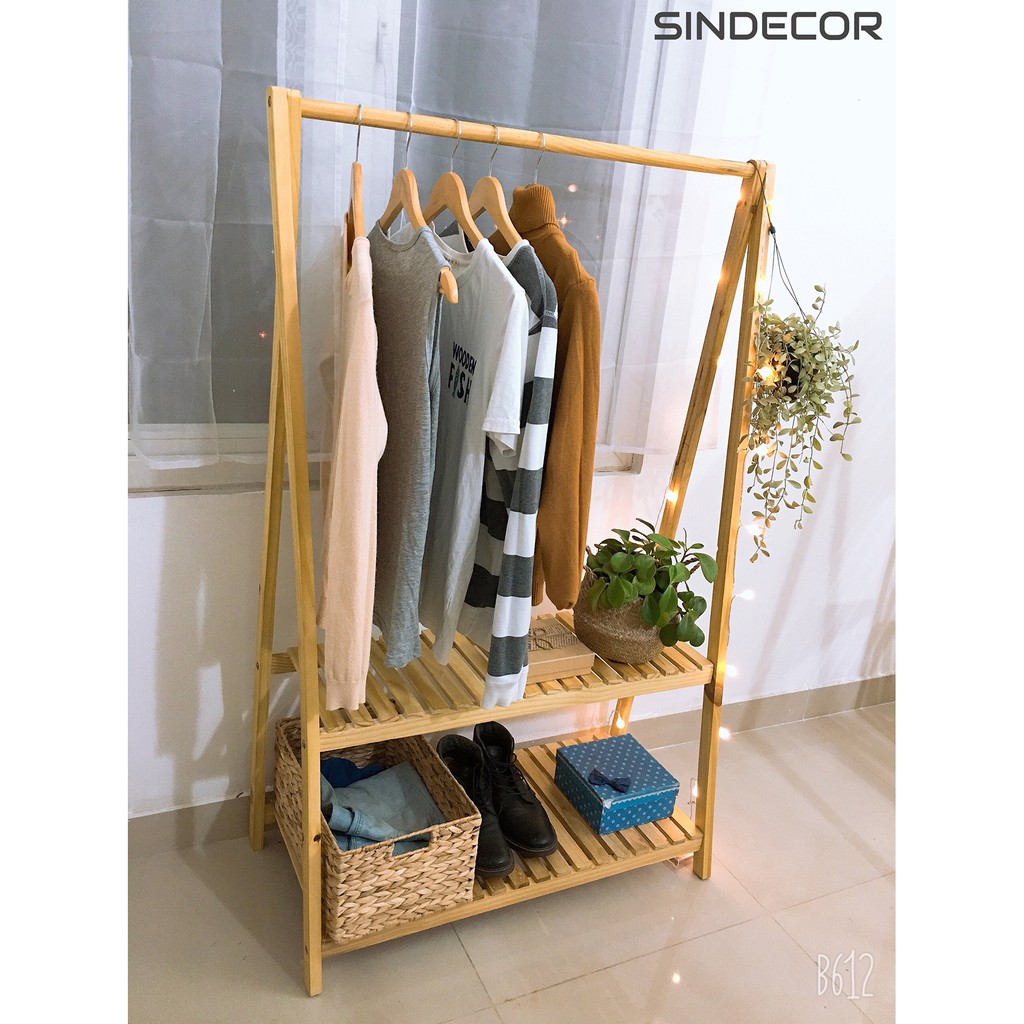 Nhà cửa & Đời sống > Dụng cụ chăm sóc nhà cửa > Dây phơi & giá phơi quần áo || Tủ quần áo gỗ - Kệ treo quần áo 2 tầng đa năng - SindecorCòn hàng