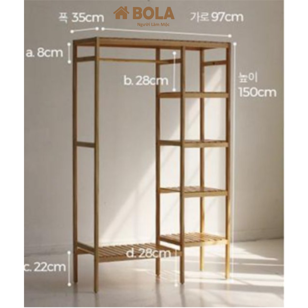 [Mã LIFE50KALL giảm 10% đơn 200K] TỦ QUẦN ÁO GỖ THÔNG TỰ NHIÊN BOLA 103x150 cm. TỦ TREO QUẦN ÁO ĐÔI 5 TẦNG