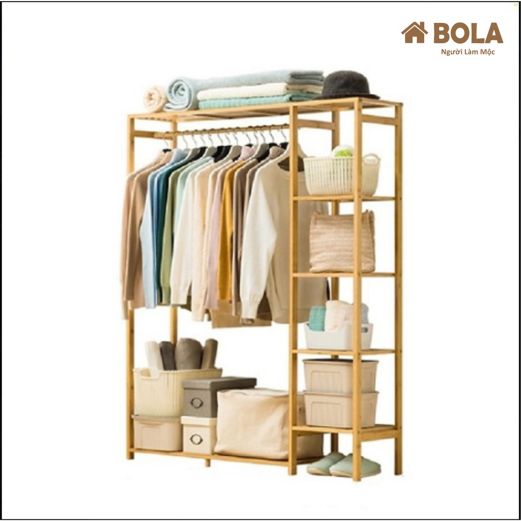 Giới thiệu [Mã LIFE50KALL giảm 10% đơn 200K] TỦ QUẦN ÁO GỖ THÔNG TỰ NHIÊN BOLA 103x150 cm. TỦ TREO QUẦN ÁO ĐÔI 5 TẦNG