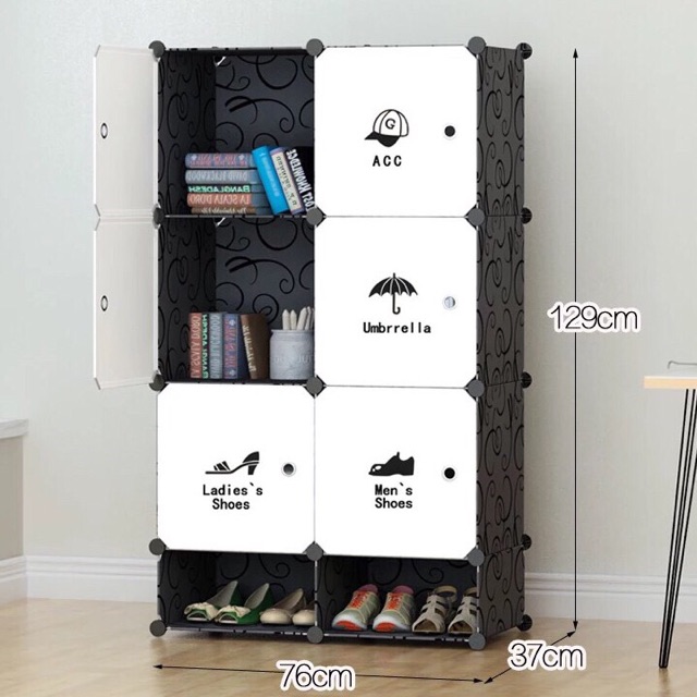 Chi tiết phụ kiện tủ nhựa ghép đa năng 6+2 ô giày. Thân hồng cửa trắng quần áoTấm thân 35*45cm: 19