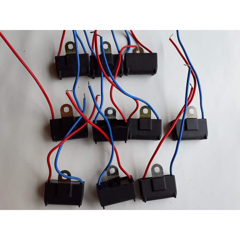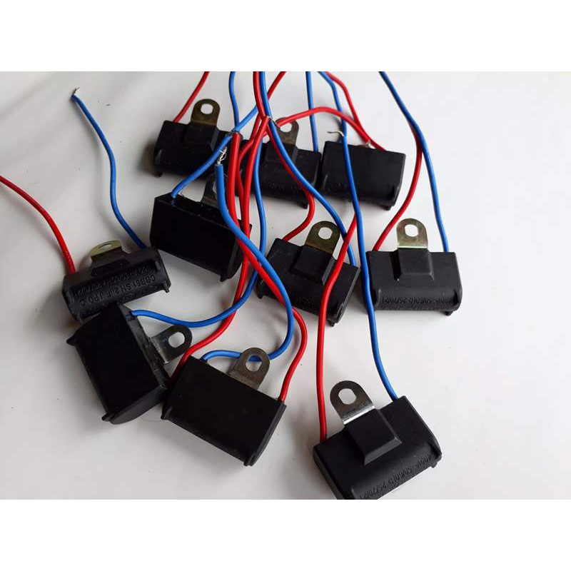 bộ sản phẩm gồm 1 tụ quạt 2MF Dùng để thay thế tụ đã bị yếu hoặc hỏng của quạt treo tường,quạt đứng,quạt hộp ...........