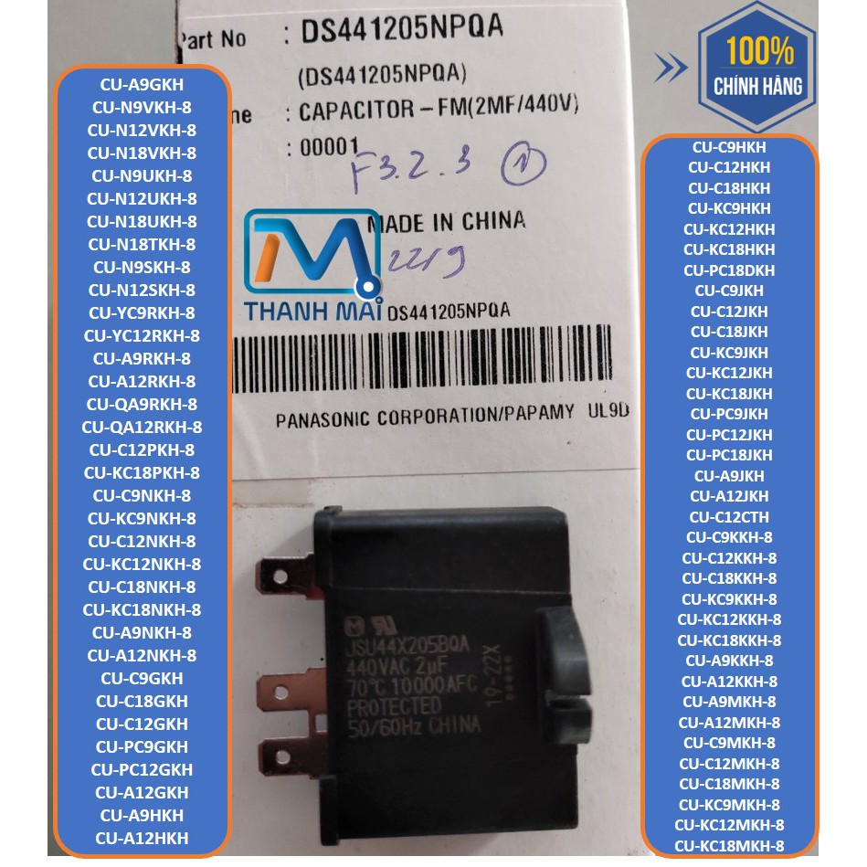 Tụ quạt dàn ngoài Máy lạnh Panasonic CU-A9GKH // N9VKH-8 // N12VKH-8 // N18VKH-8 // N9UKH-8 // N12UKH-8 // N18UKH-8