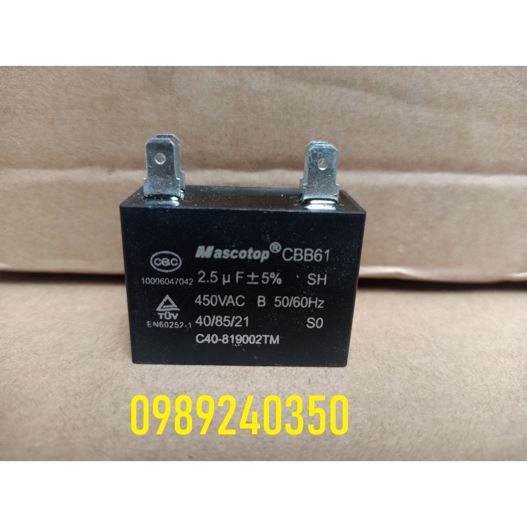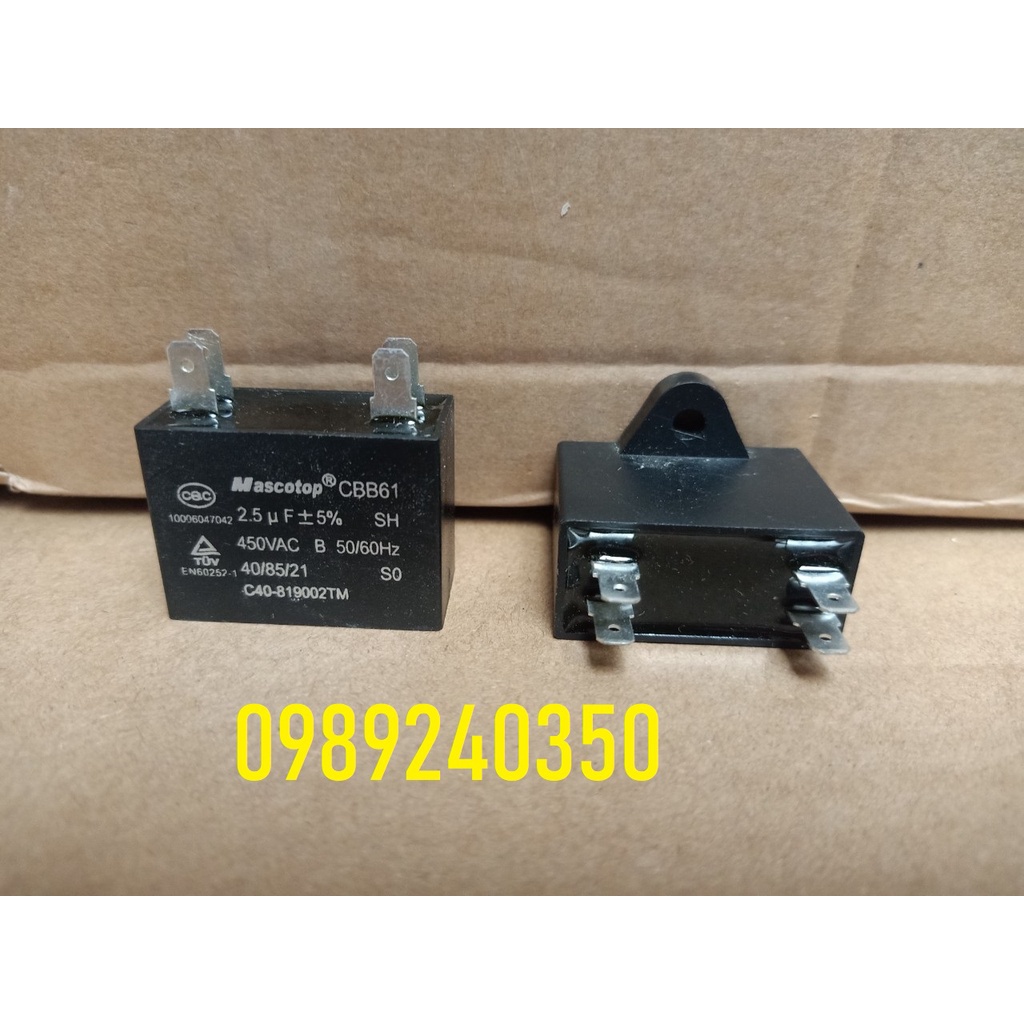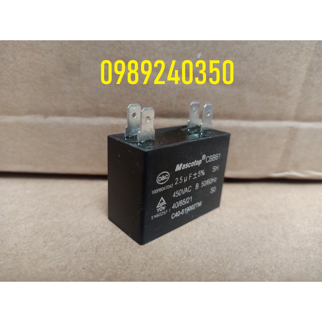 Tụ quạt điều hòa 2,5uf+-5% 450VAC loại chân zắc