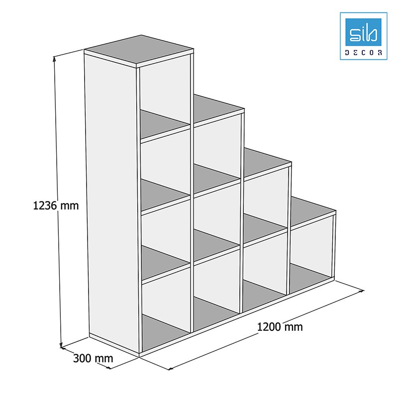 Giới thiệu Tủ Sách Gỗ Bậc Thang Lớn SIB Decor Cho Phòng Khách, Phòng Làm Việc, Kích Thước 123.,6 x 120 x 30cm