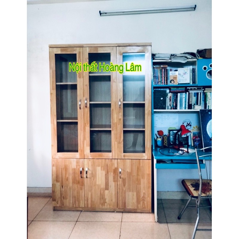 chống xước hai mặt dày 1,8 cm. Gỗ được xử lý cẩn thận, không cong vênh, co ngót, nứt nẻ, không độc hại tới sức khỏe của người sử dụng, thân thiện với môi trường. Tủ được thiết kế 3 cánh kính mở ở trên kết hợp 3 cánh tủ ở dưới rất tiện dụng khi sử dụng. Kiểu dáng đẹp, mĩ thuật rất phù hợp với mọi không gian làm việc và học tập.