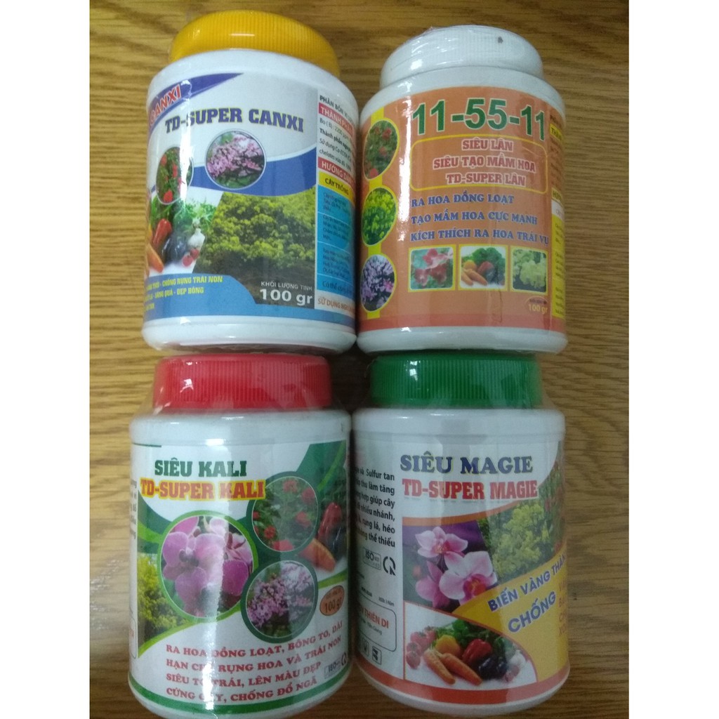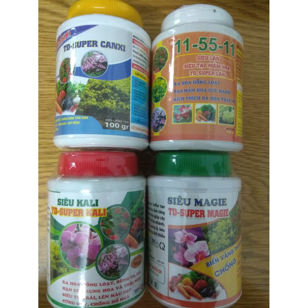 Nhà cửa & Đời sống > Làm vườn > Phân bón || Bộ tứ sản phẩm dưỡng cây, kích hoa ( Canxi, Kali, Magie, siêu lân ) 100 gram/chaiCòn hàng