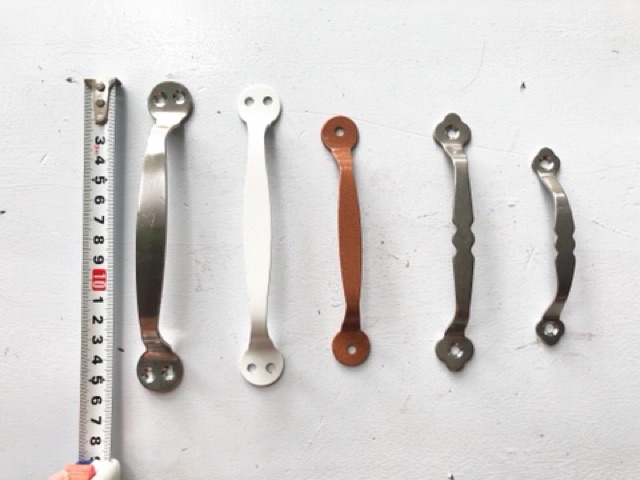Tay nắm tủ bên mình có 3 màu: sắt mạ (trơn và, màu trắng và màu nâu3 loại đều có 3 cỡ : bé ( 10cm), nhỡ (13cm) và to (16cm)