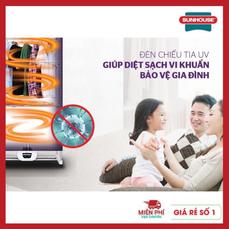 Giới thiệu Tủ sấy quần áo Sunhouse SHD2707, Có điều khiển cỡ lớn mẫu mới nhất, Công suất 1400W, Sấy tối đa 15 kg