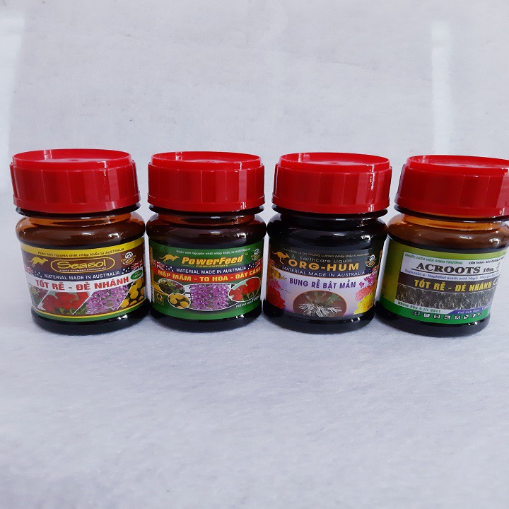 Nhà cửa & Đời sống > Làm vườn > Phân bón || Bộ tứ siêu đẳng dành cho hoa lan ( powerfeed+seasol+accroots+org hum ) 100ml/chaiCòn hàng
