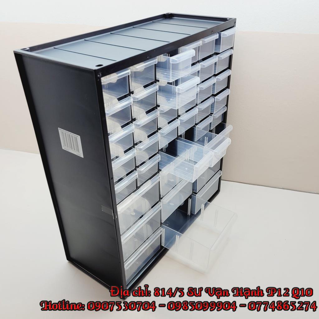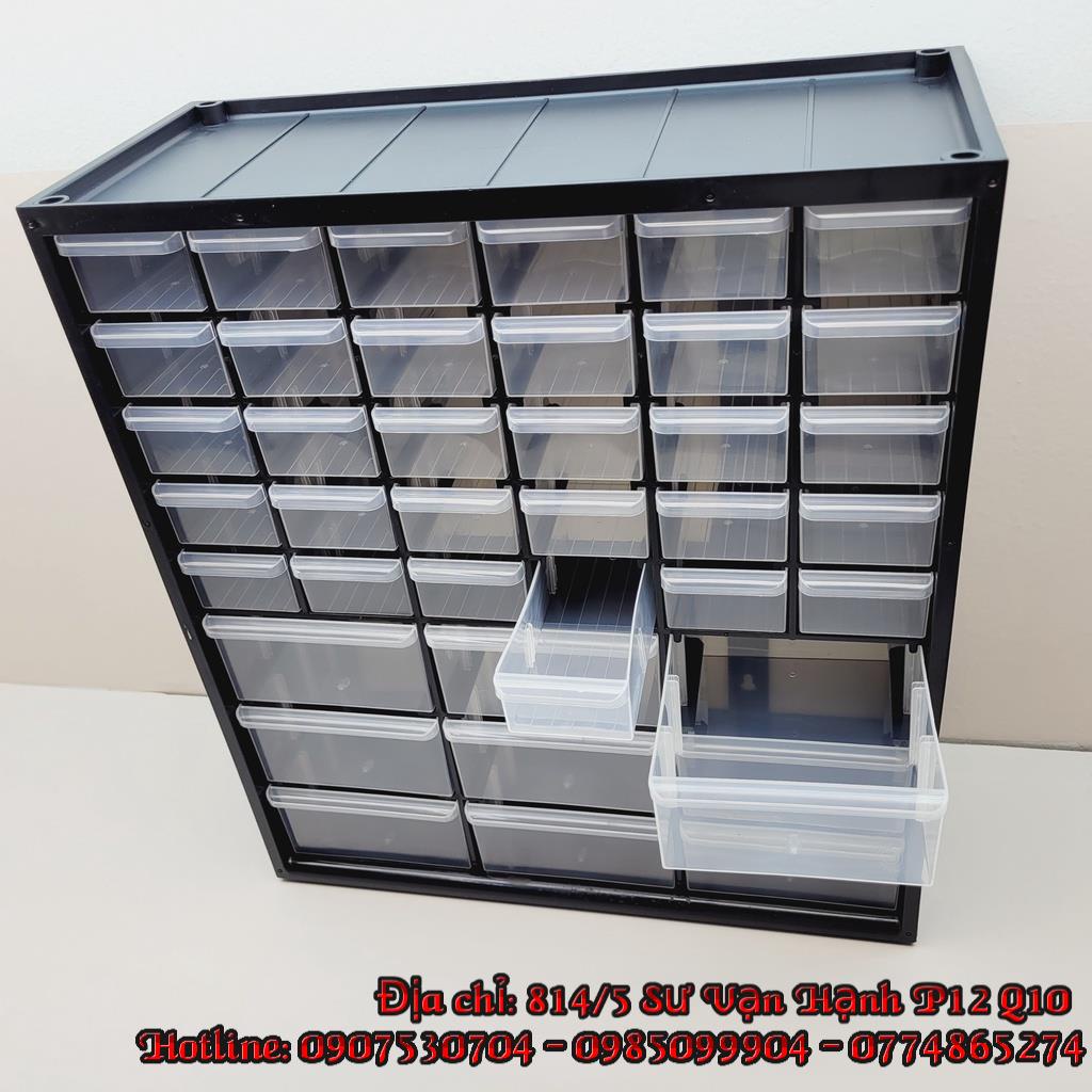 - Ngăn tủ (39 ngăn) được làm bằng nhựa PS trong suốt và cứng cáp trong đó có 09 ngăn lớn và 30 ngăn nhỏ.