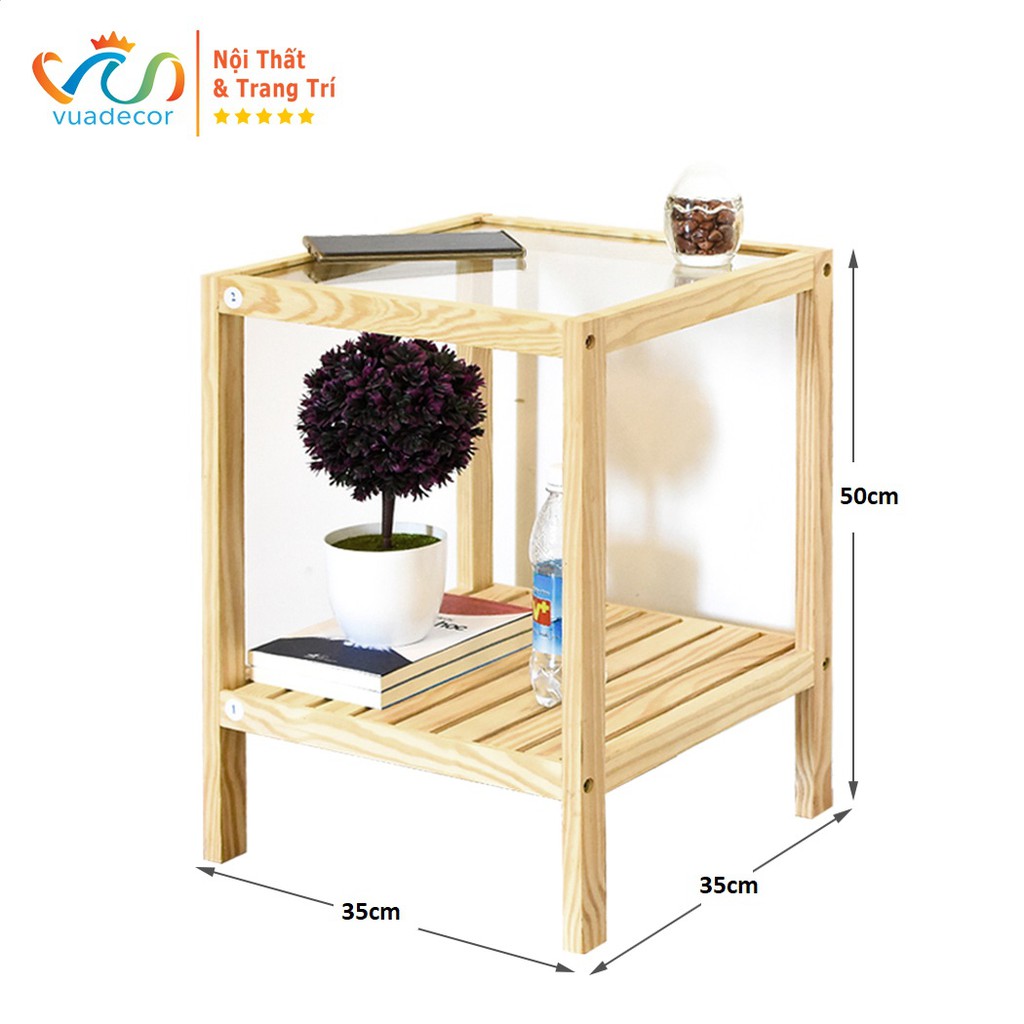 Tủ Tab Đầu Giường 2 Tầng Đa Năng Mặt Kính Vuadecor Gỗ Thông Tự Nhiên Hàng Lắp Ráp