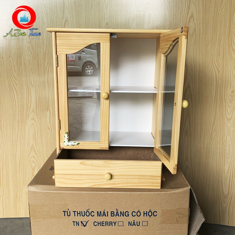 Tủ Thuốc Gia Đình, Tủ Thuốc Mái Bằng Có Hộc [FreeShip - GỖ THÔNG XUẤT KHẨU]Sản Phẩm Bền Chắc, Chất Liệu Gỗ Tự Nhiên