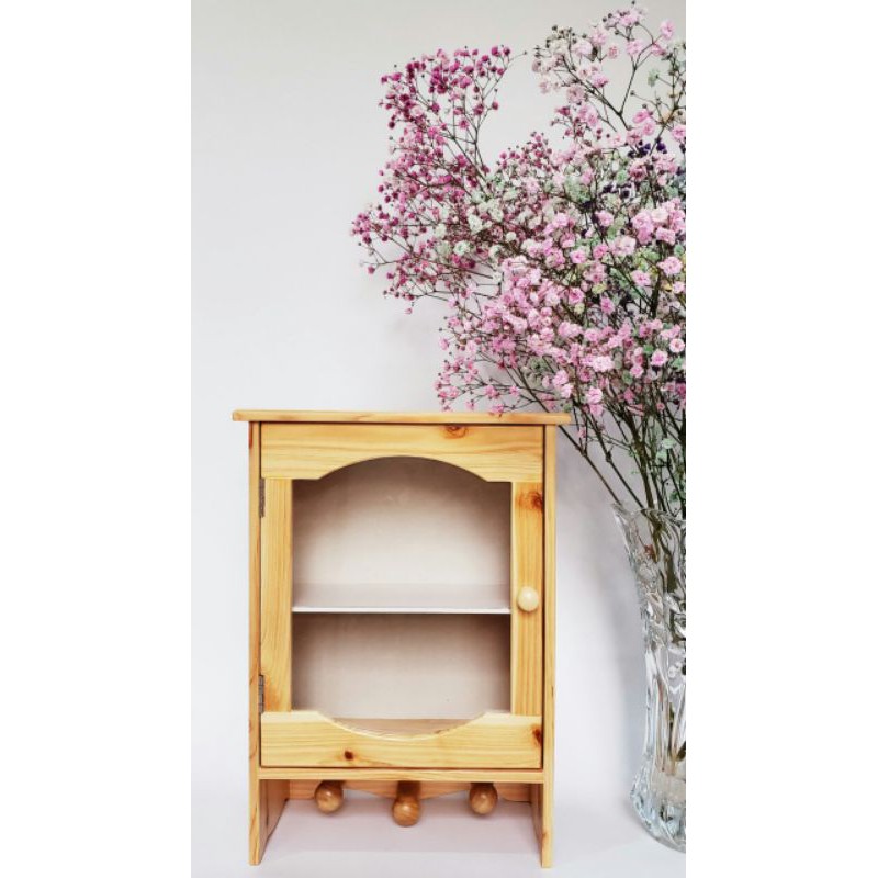 - Kích thước tủ : 25*37*13- Tủ được sản xuất từ gỗ thông, bề mặt láng mịn, đẹp, dưới có móc để treo thêm đồ