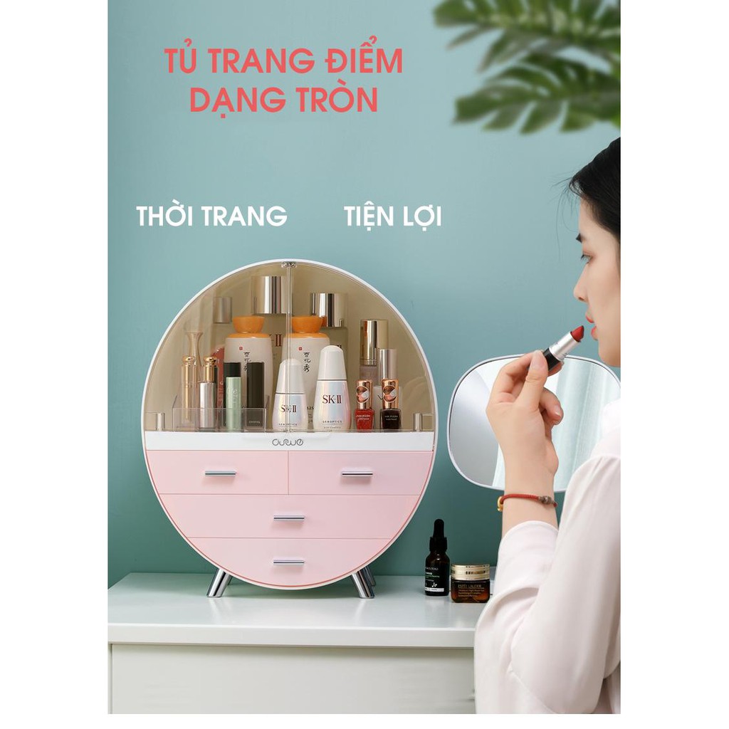 Tủ Trang Điểm Dạng Tròn 4 Ngăn lớn (Xám)- Tên sản phẩm : Tủ Trang Điểm Dạng Tròn 4 Ngăn lớn