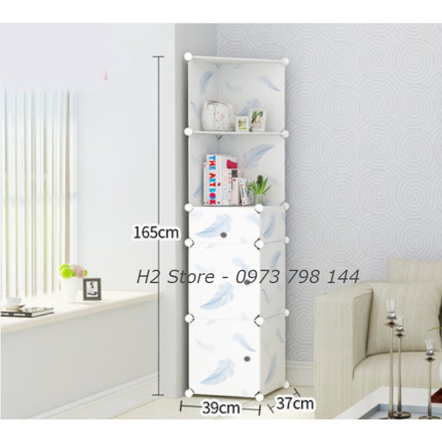 TỦ TRANG TRÍ LẮP GHÉP THÔNG MINH GIÁ RẺ 2 Ô TO + 1 Ô NHỎ + 2 KỆ GÓC VÁCH TRẮNG LÔNG VŨ ĐA NĂNG sâu 37cmKích thước: cao 1m65, ngang 39 cm, sâu 37cm.