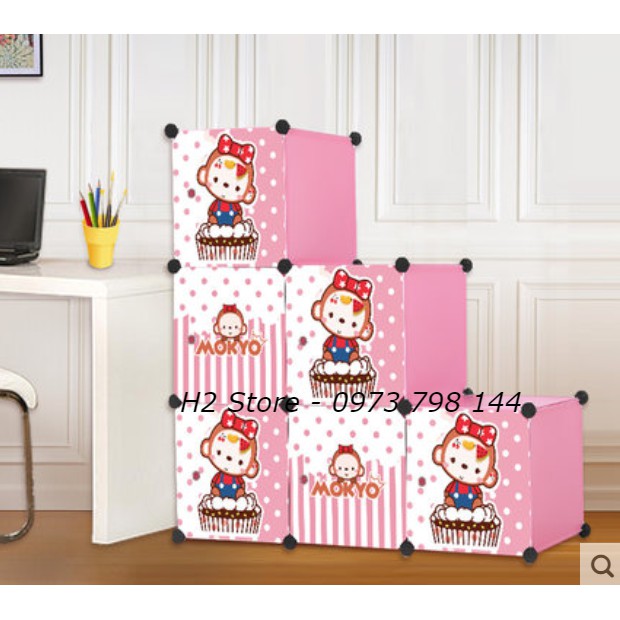 Giới thiệu TỦ TRANG TRÍ THÔNG MINH ĐỂ ĐỒ NHỎ GỌN LẮP GHÉP 6 Ô CỬA KHỈ VÁCH HỒNG DỄ THƯƠNG ĐA NĂNG sâu 37cm