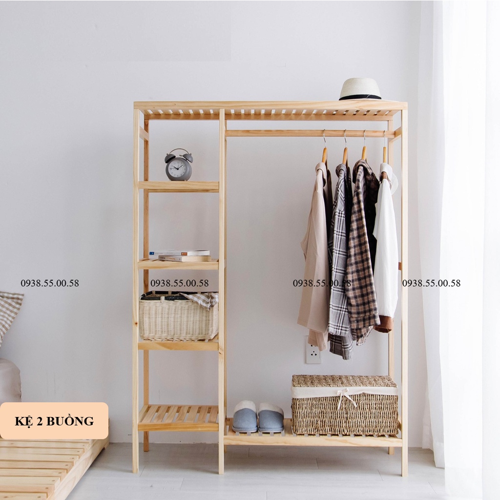 Tủ treo quần áo 2 gian gỗ Thông - Kệ treo quần áo 2 gian NHẬP [ GOTH10K ] giảm ngay 10k