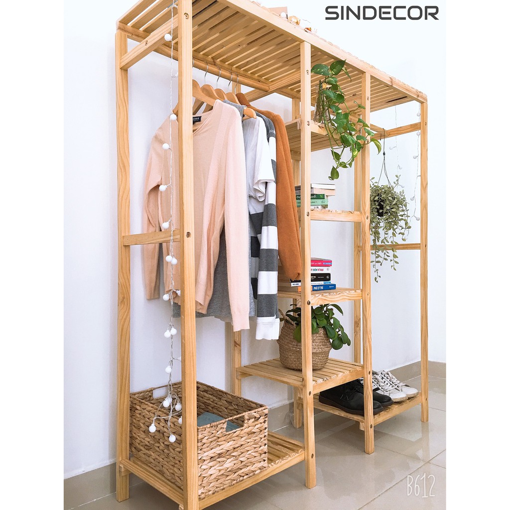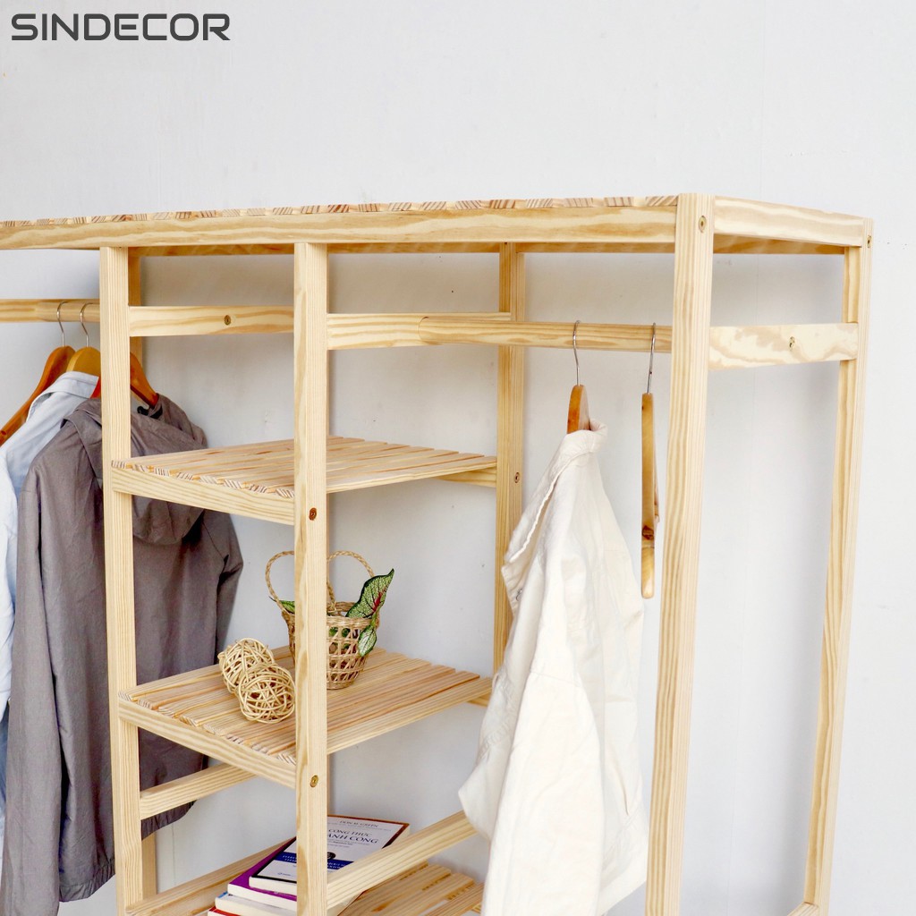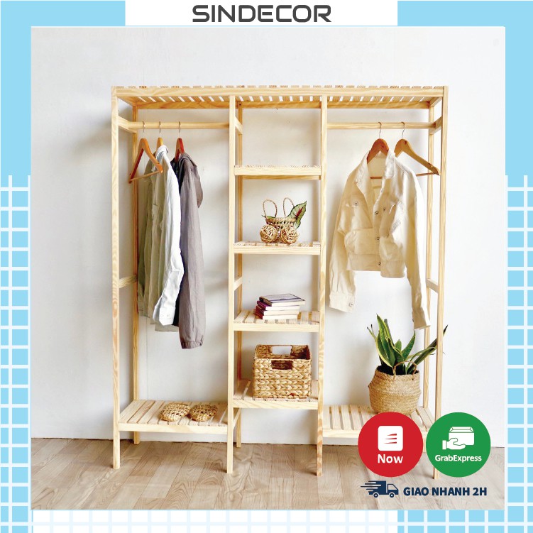Tủ treo quần áo gỗ 3 ngăn - Kệ treo quần áo 3 ngăn - Sindecor