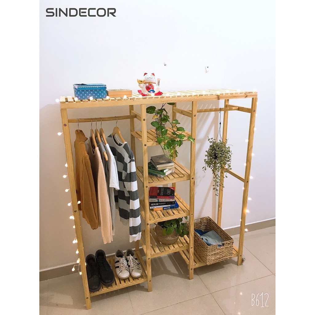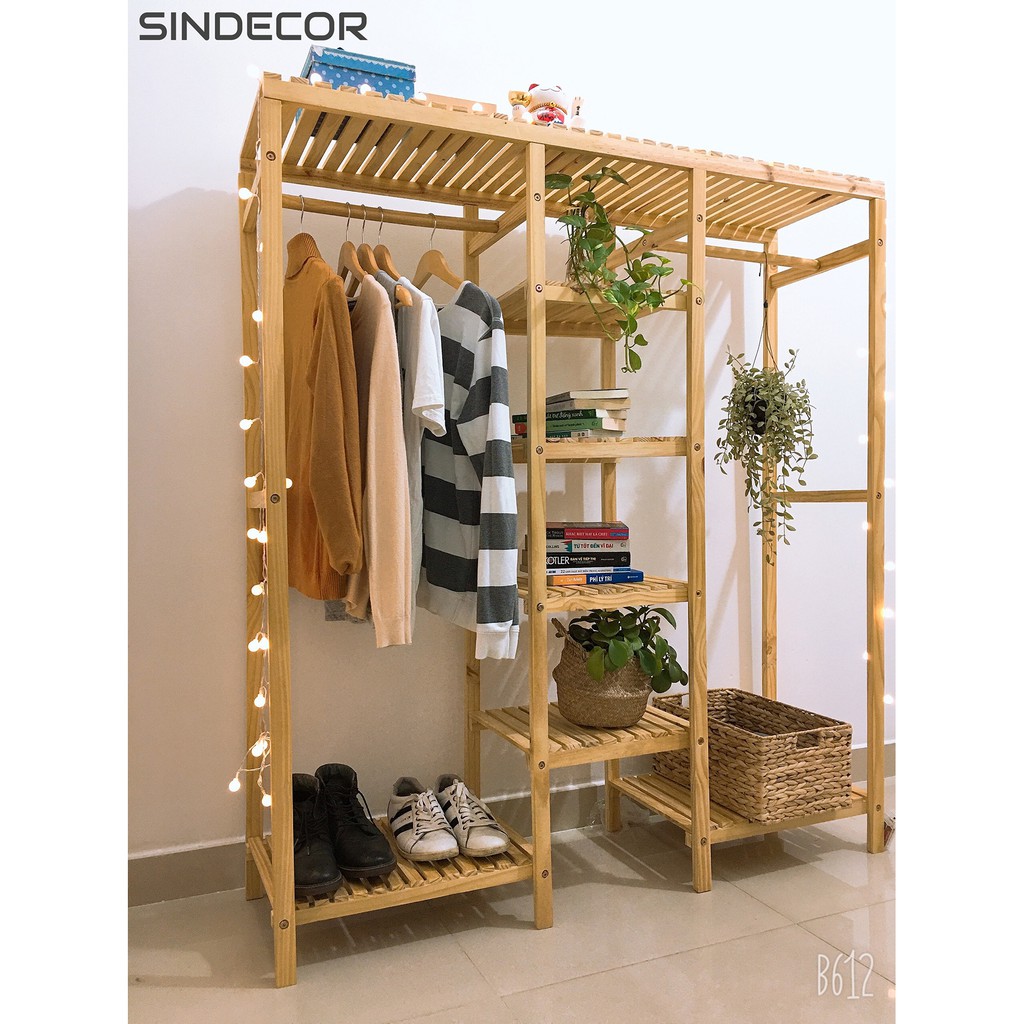 Nhà cửa & Đời sống > Dụng cụ chăm sóc nhà cửa > Dây phơi & giá phơi quần áo || Tủ treo quần áo gỗ 3 ngăn - Kệ treo quần áo 3 ngăn - SindecorCòn hàng