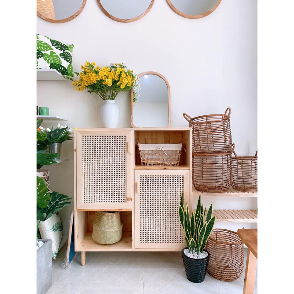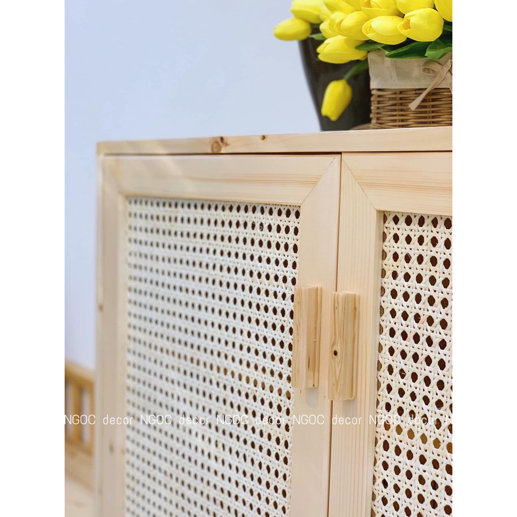 TỦ TREO QUẦN ÁO GỖ THÔNG CAO CẤP PHỐI ĐAN MÂY MẮT CÁO TỰ NHIÊN (GIÁ Xưởng)