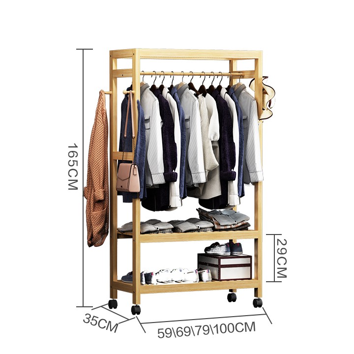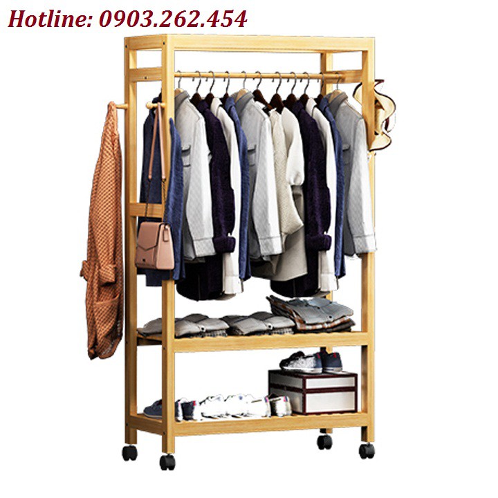 Tủ/Giàn treo quần áo gỗ có bánh 60cm