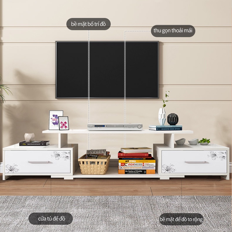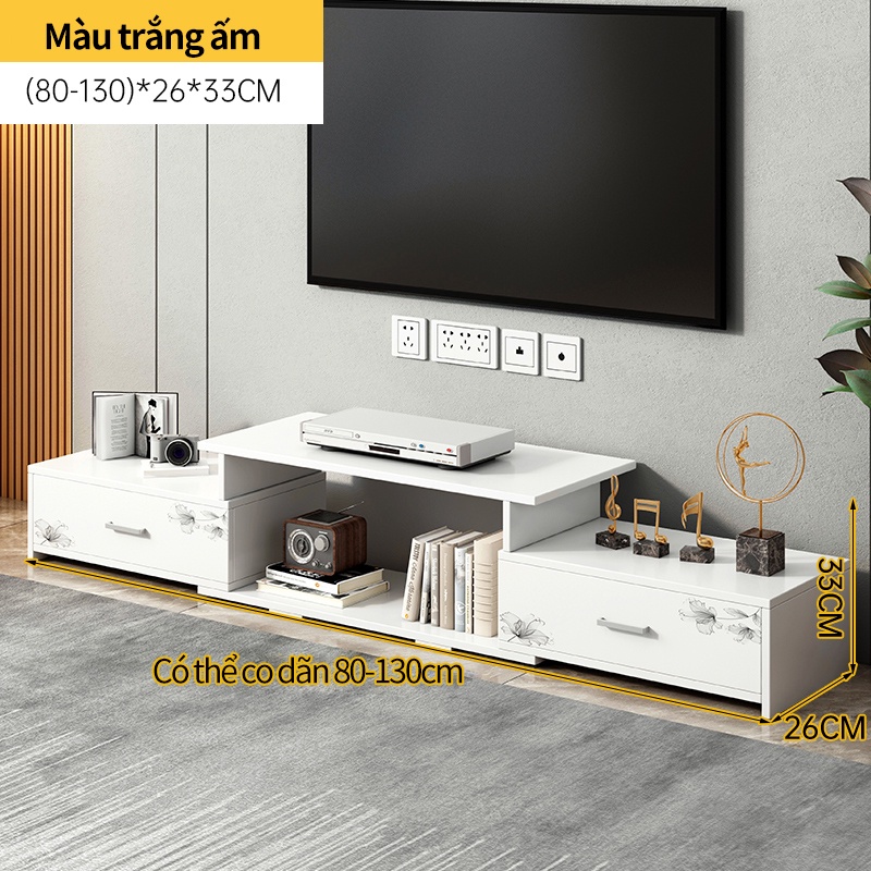 Tủ TV kệ tivi màu trắng có thể co giãn độ dài khoảng từ 80-130cm tủ bày tivi đơn giản thời trang nhỏ gọnTủ kệ TV kiểu dáng đơn giản nhưng vô cùng thanh lịch