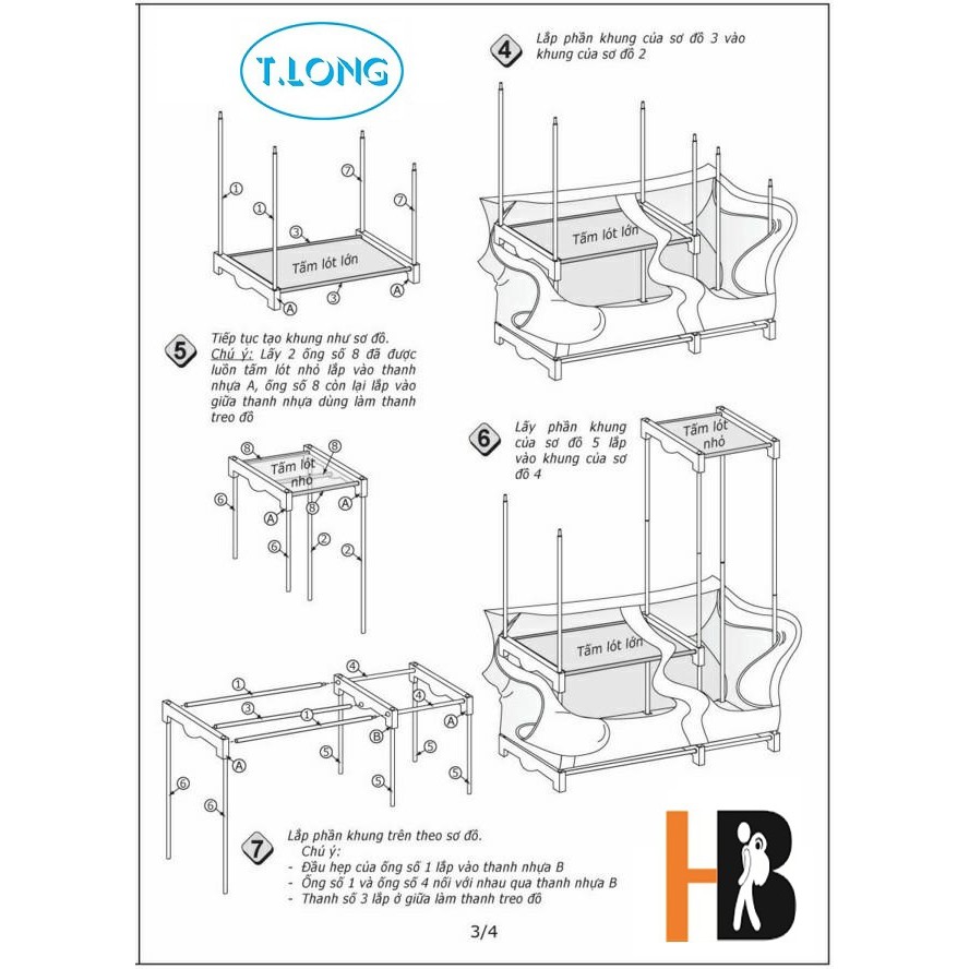 - Chú ý lắp ống sắt vào các chân nhựa sao cho thật vừa vặn, tránh trường hợp không khớp sẽ gây khó khăn trong việc mặc áo tủ.