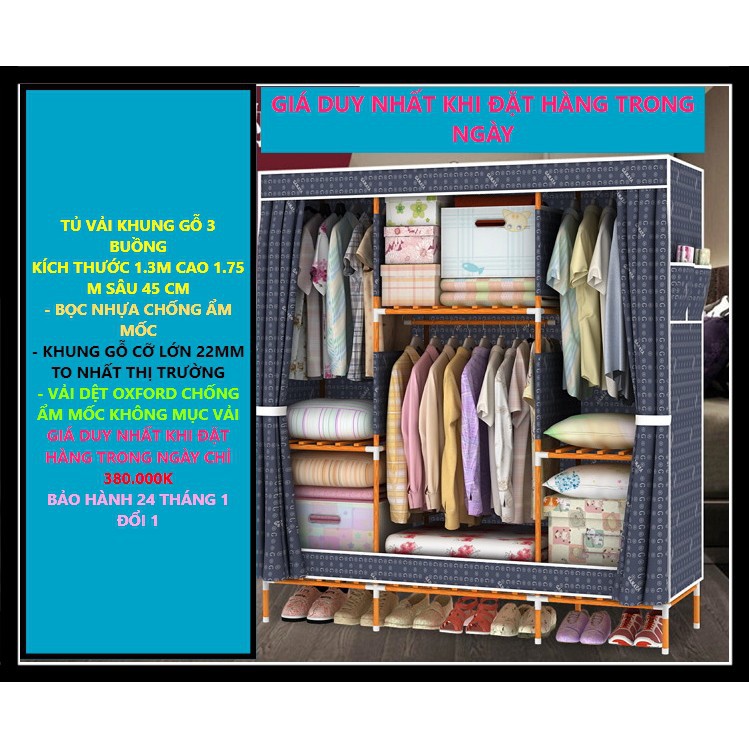 Nhà cửa & Đời sống > Nội thất > Tủ bếp || Tủ vải khung gỗ 1m3 khung gỗ 3 buồng cỡ lớn bọc nhựa chống ẩm mốcCòn hàng