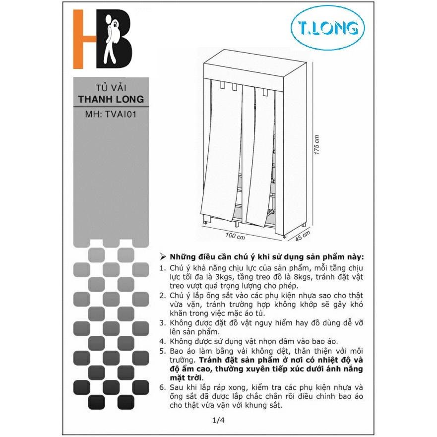 - Tủ vải Thanh Long 01 100 x 46 x 175 cm có lớp áo (vỏ bao) bên ngoài được làm bằng chất liệu vải không dệt thân thiện với môi trường.