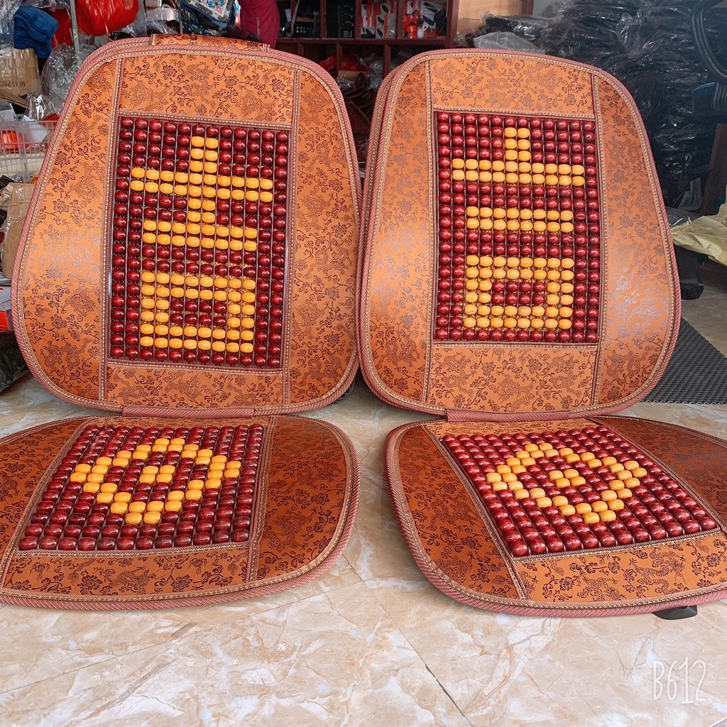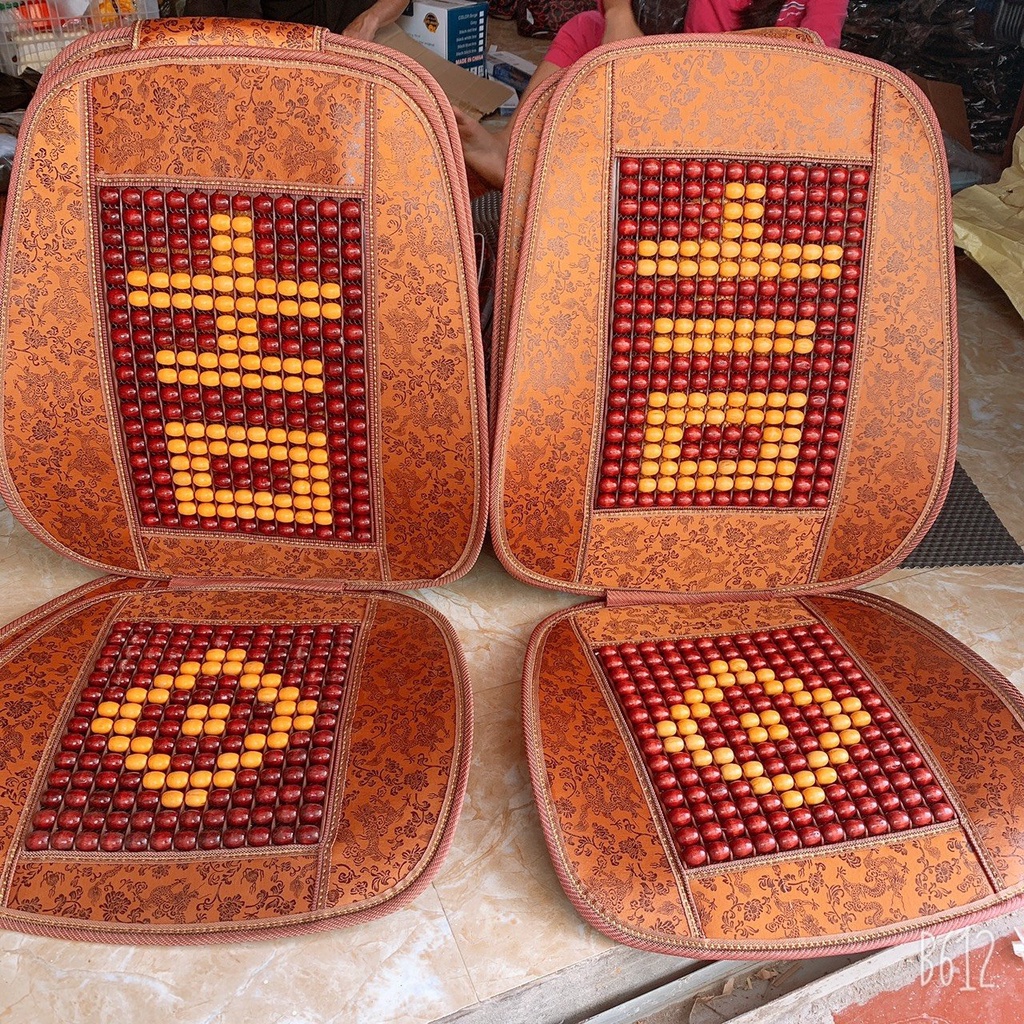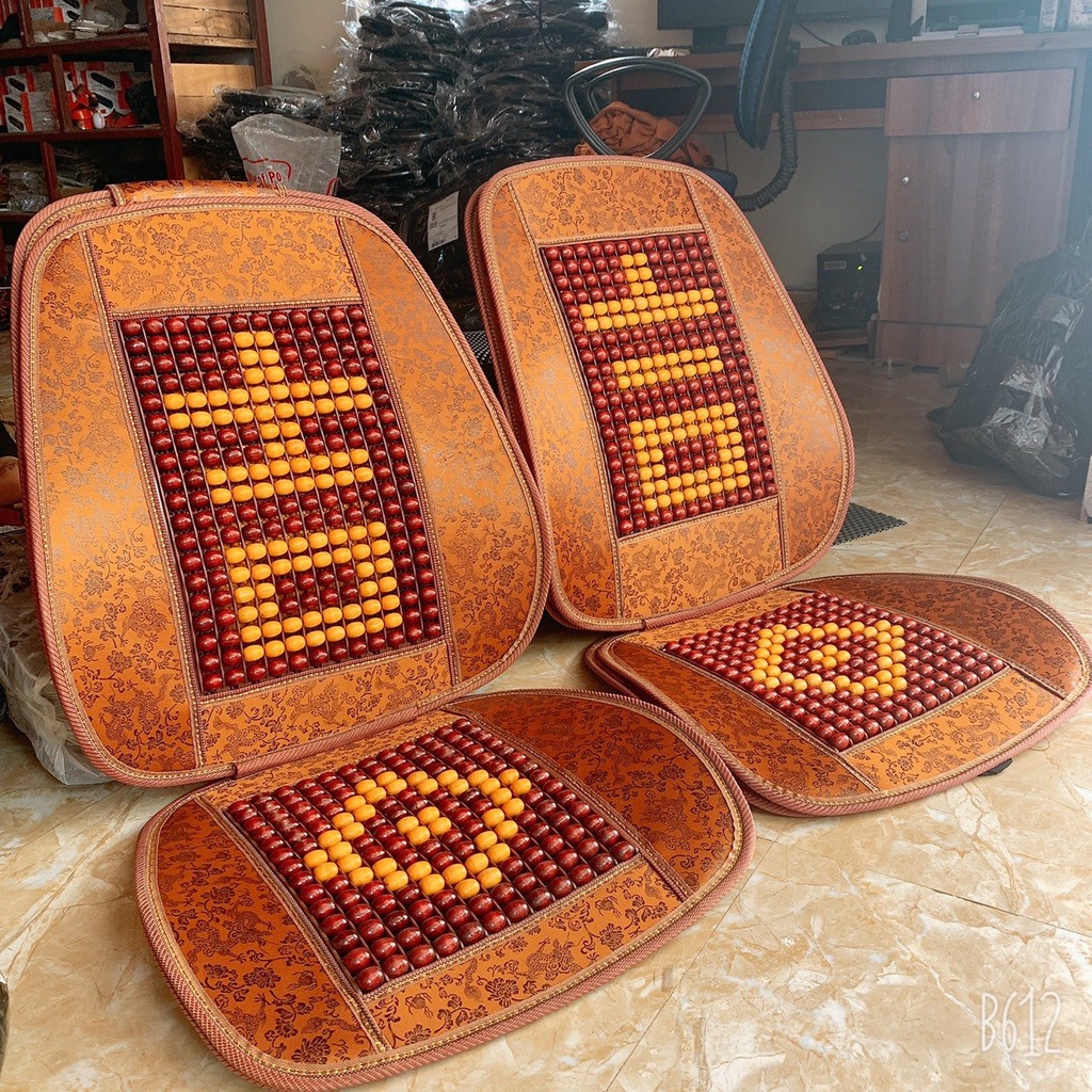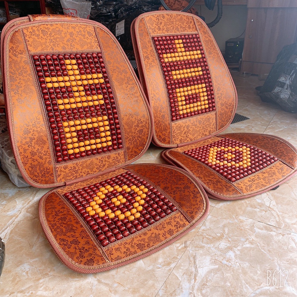 Bộ tựa lưng kèm lót ghế hạt gỗ phối dạ họa tiết cao cấp cho ghế ô tô - ghế văn phòng