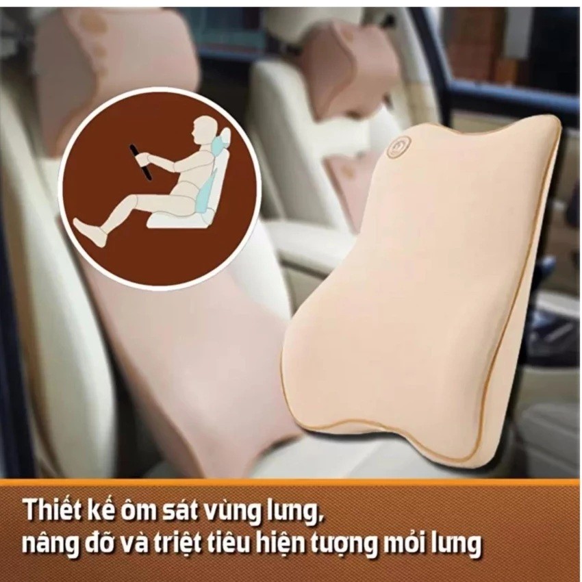 Gối tựa lưng và cổ bằng cao su non được thiết kế, định hình giúp nâng đỡ tối đa lưng, vai. Do đó hiệu quả chống đau lưng, vai được nâng cao. Bao lưng với khóa kéo được giấu khéo léo, có thể tháo ra để giặt sạch, phơi khô trước khi bọc lại ruột gối.
