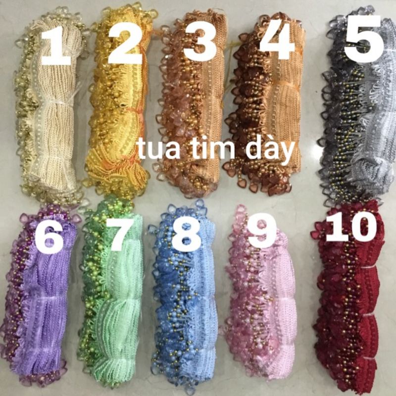 Hiện tại shop có 3 loại như hình ảnh mô tả: tua tim dày, tua ngọc trai, tua tim thủng.