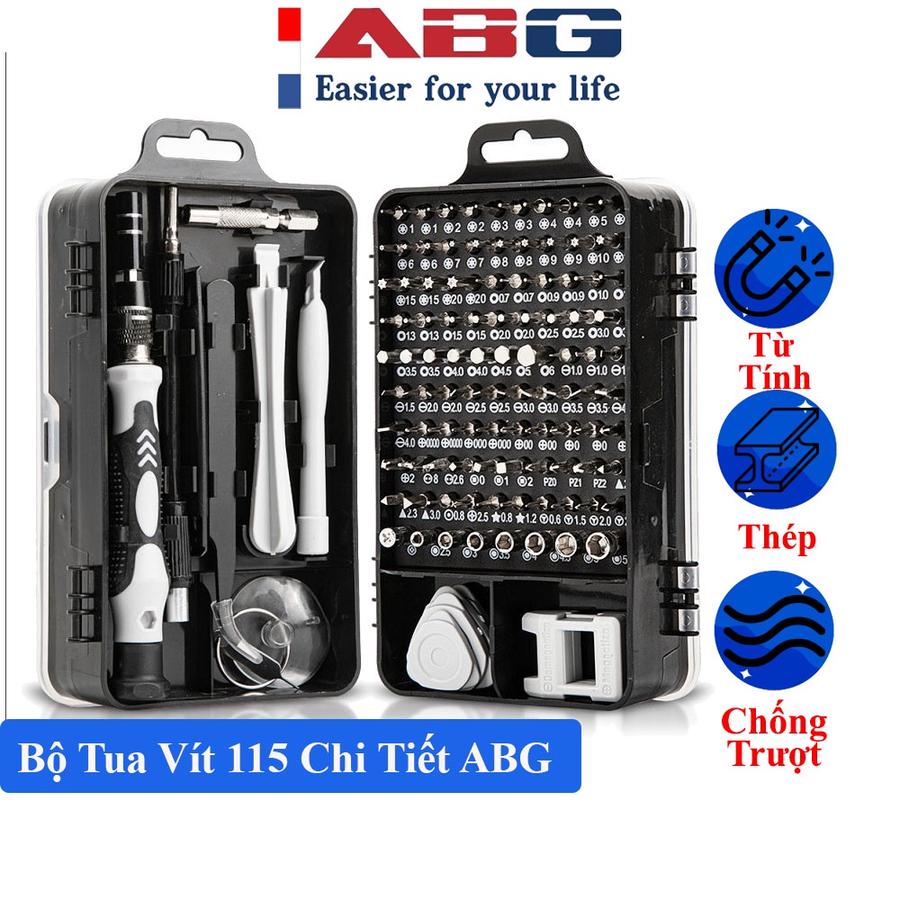 Bộ Tua Vít 115 Chi Tiết ABG Hộp Công Cụ Tay Cầm Chống Trượt Cao Cấp Sửa Chữa Điện Thoại Di Động Máy Tính