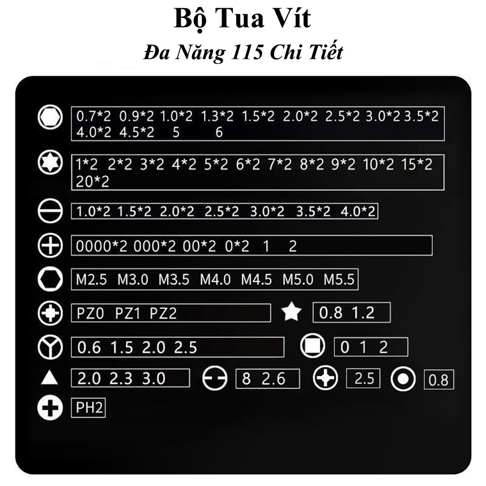 BỘ TUA VÍT 115 CHI TIẾT ABG HỘP CÔNG CỤ TAY CẦM CHỐNG TRƯỢT CAO CẤP SỬA CHỮA ĐIỆN THOẠI DI ĐỘNG MÁY TÍNH BẢNGBộ Tua Vít 115 Chi Tiết Hộp Công Cụ Sửa Chữa Tay Cầm Chống Trượt là sự kết hợp 115 chi tiết gồm nhiều đầu vít khác nhau bộ dụng cụ đảm bảo có thể tương thích với 99.9% các loại ốc trên các đời điện thoại, laptop,.. điển hình cho các điện thoại của Apple iPhone 4,5,6,7,8,X,Xs,.. Samsung, Xiaomi, Nokia,... ngày nay!