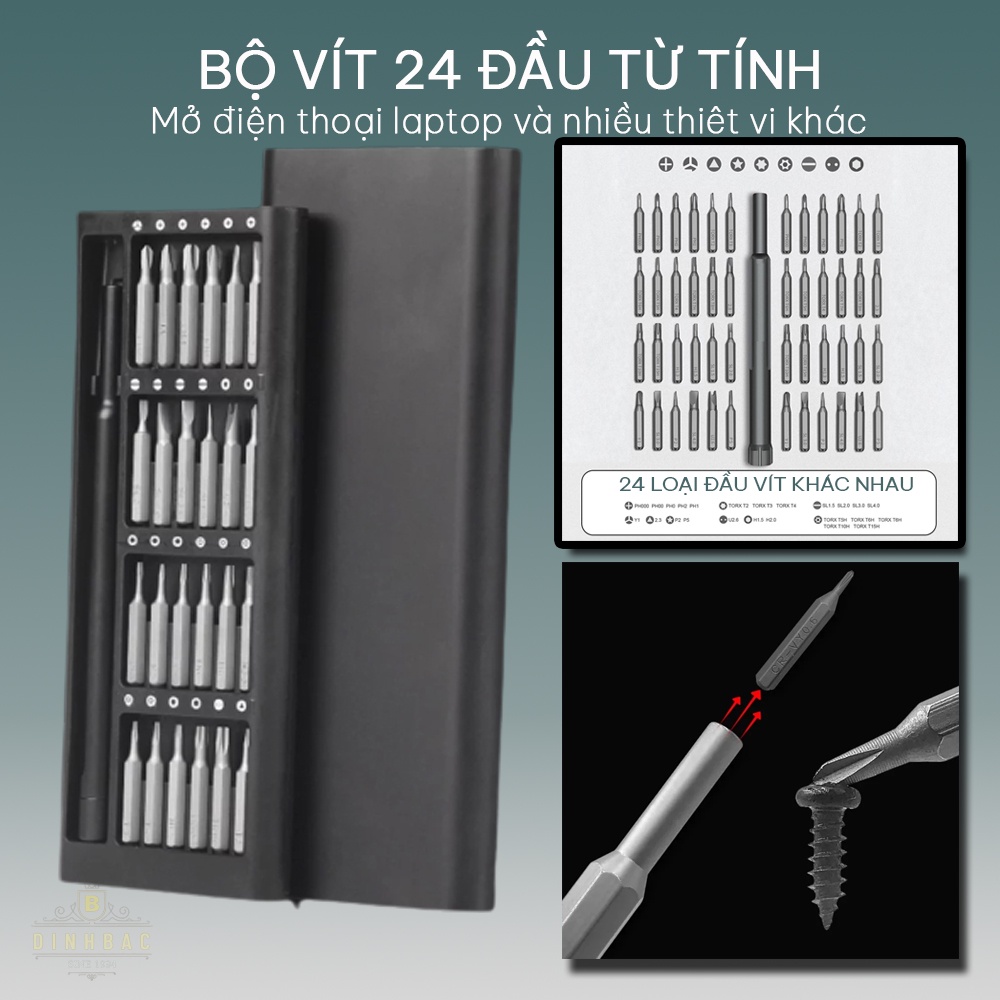 Bộ tua vít 24 chi tiết đầu từ tính mở điện thoại laptop và nhiều thiết bị khác Đình Bắc Store
